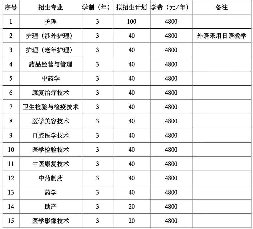 注:护理(涉外护理)专业为校企合作专业,外语采用日语教学,只参加一志愿的录取,不参加二、三志愿及调剂志愿录取。