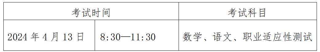 1、高中毕业生:考试方式为笔试。数学100分、语文100分、职业适应性测试200分,总分400分。