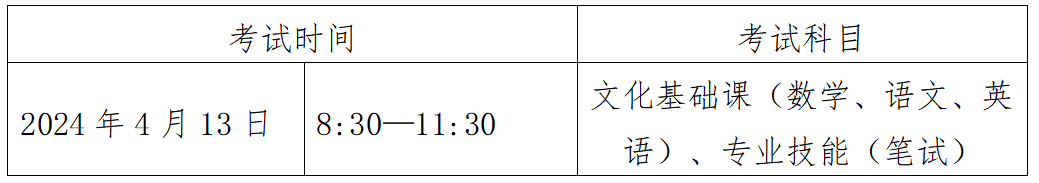 2、中职毕业生:考试方式为笔试。文化基础课(数学50分、语文50分、英语50分)、专业技能200分,总分350分。