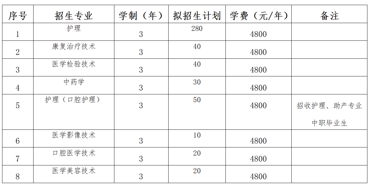 注:护理(口腔护理)专业,只招收护理、助产专业中职毕业生。